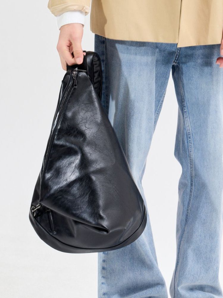 유니크한 실루엣의 슬링백 입니다. 크랙 무늬의 합성피혁 소재로 제작되어 세련되면서도 빈티지한 무드를 연출해 줍니다.