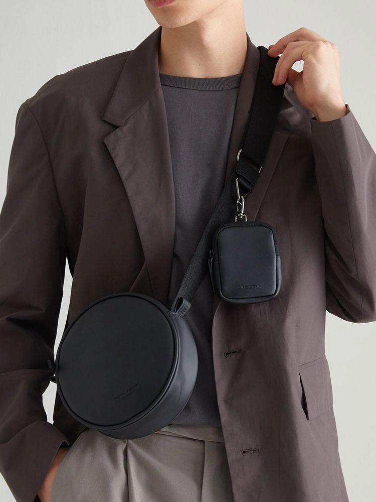 HQ 시리즈로 제작된 동그란 모양의 미니 크로스백입니다. 미니 파우치가 달려있어 편리한 수납기능을 추가했습니다. 스마트폰 최대 17cm까지 수납 가능하며, 스트랩 길이 조절이 가능해 남녀 누구나 착용 가능합니다.